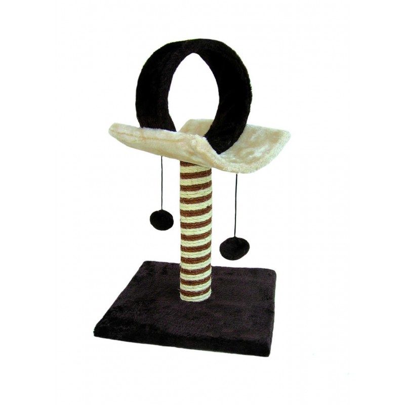 Rascador Landcat Ring de Freedog, forrado con cuerda de sisal muy resistente para facilitar el desgaste de las uñas de tu gato , la base del rascador y la plataforma de la parte superior están forrados con moqueta de tacto suave. De la plataforma superior cuelgan dos pelotas que atraerán la atención de tu mascota hacia el rascador. Rascador ideal para distraer a tu gato mientras desgasta sus uñas. Accesorio muy recomendable para que tu gato mantenga sus uñas perfectas y evitar que rasque muebles en casa. La medida del rascador es 33,5 x 33,5 x 54,5cm.