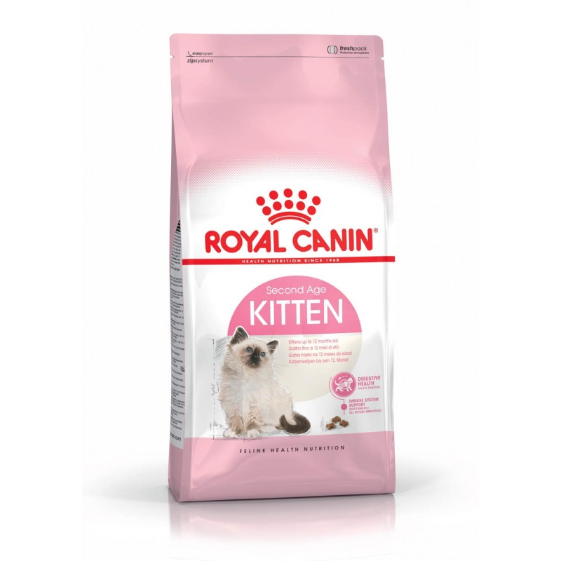 Royal Canin Kitten es un alimento para los gatitos de los 4 a los 12 meses de edad. Seguridad digestiva ultra-reforzada: Gracias al uso de proteínas altamente digestibles, que limitan el contenido de residuos fermentables en el intestino, de fructo-oligosacáridos, de pulpa de remolacha (que equilibran la flora intestinal) y de EPA/DHA (que protegen la membrana de la mucosa intestinal). Especificaciones Refuerzo de las defensas naturales: Gracias a un complejo sinérgico patentado de antioxidantes (vitaminas E y C, luteína y taurina) y manano-oligosacáridos, que estimulan la producción de anticuerpos. Reducción del olor de las heces: Gracias a un alto contenido en proteínas L.I.P.*, seleccionadas por su alto nivel de asimilación (90 % de digestibilidad), que reducen la cantidad de residuos fermentables en el intestino. *Proteína seleccionada por su elevada asimilación. Enriquecido con DHA: El programa de crecimiento ha sido especialmente formulado por los nutrólogos de Royal Canin, integrando las más recientes innovaciones nutricionales